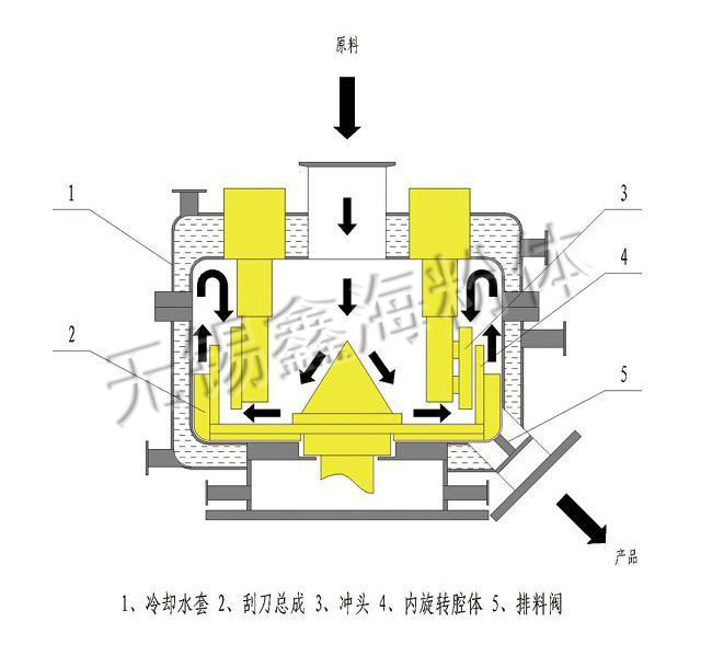 此設(shè)備主要是針對電池行業(yè)設(shè)備,上進(jìn)料口(負(fù)極材料、導(dǎo)電劑、粘接劑、電解質(zhì))經(jīng)機(jī)械融合及高精密混合處理,構(gòu)成不同材料成分的分布,提高產(chǎn)品材料的利用率,構(gòu)成不同材料的成分顆粒之間的復(fù)合化,降低產(chǎn)品的BET比面積,讓產(chǎn)品顆粒以高密度填充;將納米級粉末包覆在微米級的顆粒上,從而改進(jìn)粉體的許多物理,化學(xué)特性。機(jī)械融合設(shè)備就是基于此原理開發(fā)的。物料在轉(zhuǎn)子中高速旋轉(zhuǎn),在離心力的作用下緊貼器壁,在轉(zhuǎn)子和定子擠壓頭之間高速穿過。在這個瞬間,物料同時受到擠壓力和剪切力的作用,由于高速旋轉(zhuǎn),物料在轉(zhuǎn)子和定子之間循環(huán)往復(fù),不斷地受到擠壓力和剪切力的作用,在摩擦力的作用下顆粒表面達(dá)到一種機(jī)械熔融狀態(tài),從而將納米級的超細(xì)粉末包覆在微米級的顆粒上。